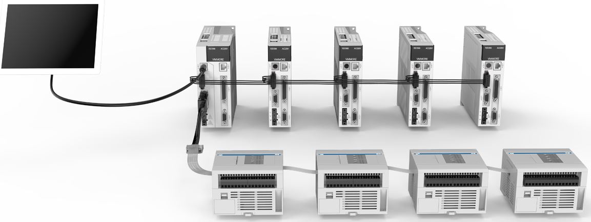 支持DBUS主/從站協(xié)議,DBUS組網(wǎng)(最大16臺),消滅位置指令脈沖線,不再受脈沖干擾的困擾