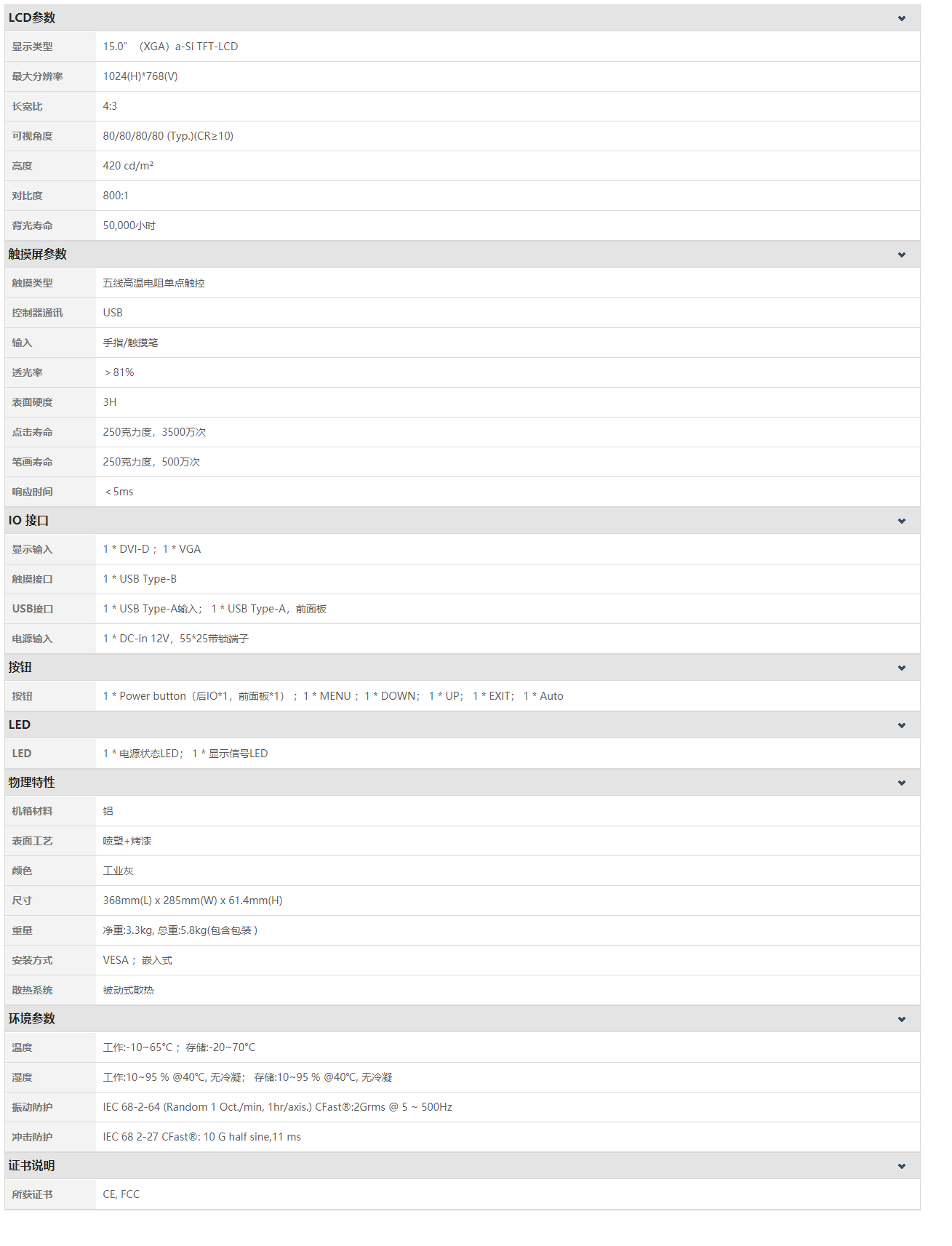 M15RF是一款15寸工業(yè)級觸摸顯示器,結合阿普奇產(chǎn)品戰(zhàn)略,由顯示面板和驅動模塊組成,整機采用全鋁合金模具壓鑄成型,具有堅固的機身和更寬的溫度適應,結合美觀的PVC前膜,使前面板達到IP65防護等級。采用高品質LED低功耗背光液晶屏,和業(yè)界高兼容性的MSTAR顯示驅動芯片,保障了圖像的長壽命穩(wěn)定輸出。高溫五線制程的電阻式觸摸屏,人性化的前置USB和開關,多種緊固連接的信號輸入及靈活的安裝方式,適用于各種嚴苛的工業(yè)應用現(xiàn)場。