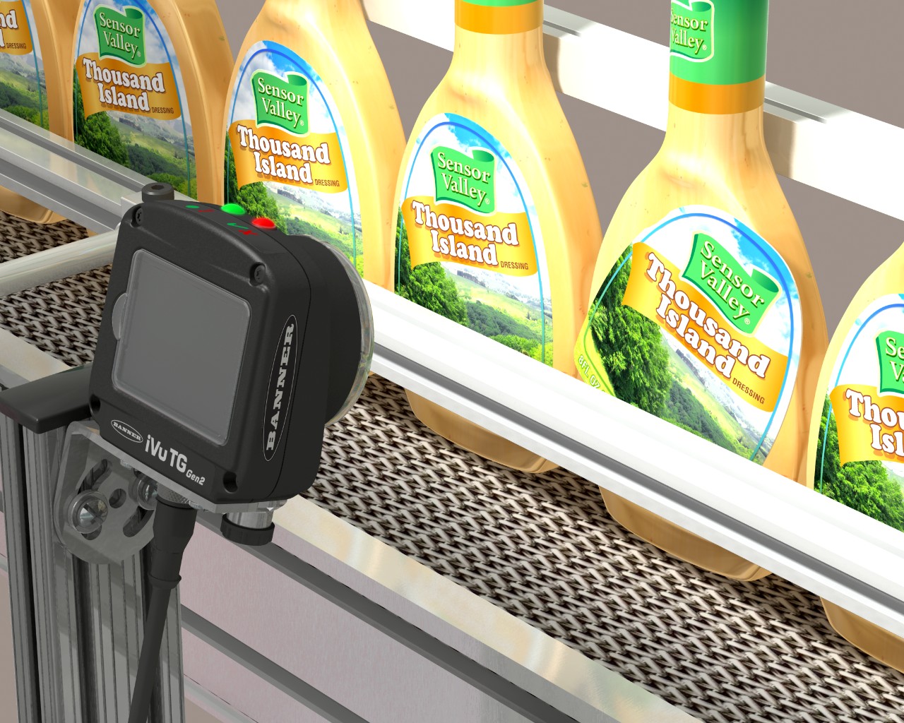 隨著每個(gè)沙拉醬瓶離開(kāi)標(biāo)簽站,配置為Match工具的iVu系列傳感器將負(fù)責(zé)對(duì)標(biāo)簽進(jìn)行檢查,