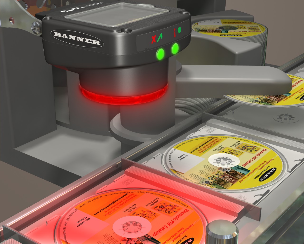 在音樂CD制造中,必須要確保每張音樂CD的方向都正確,然后才能將其裝入包裝盒內(nèi)。