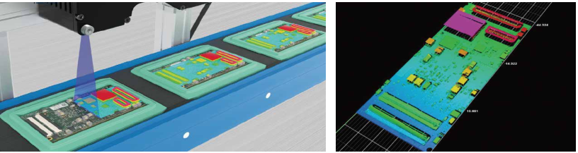 進(jìn)行PCB在線檢測,生成3D點(diǎn)云數(shù)據(jù)用于復(fù)雜測量。