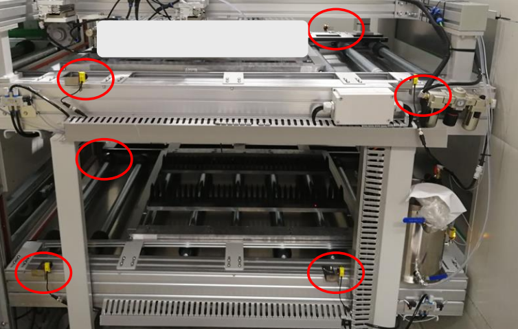 2、水平對射檢測托盤料框,如下圖紅色框中所示: