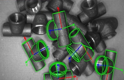 活塞桿等復(fù)雜工件因表面反光、堆疊遮擋難以抓取,3D視覺系統(tǒng)通過多目伺服技術(shù)與三維點云重建,結(jié)合避碰算法優(yōu)化抓取路徑,解決了傳統(tǒng)工裝無法適配多品種零件的問題。