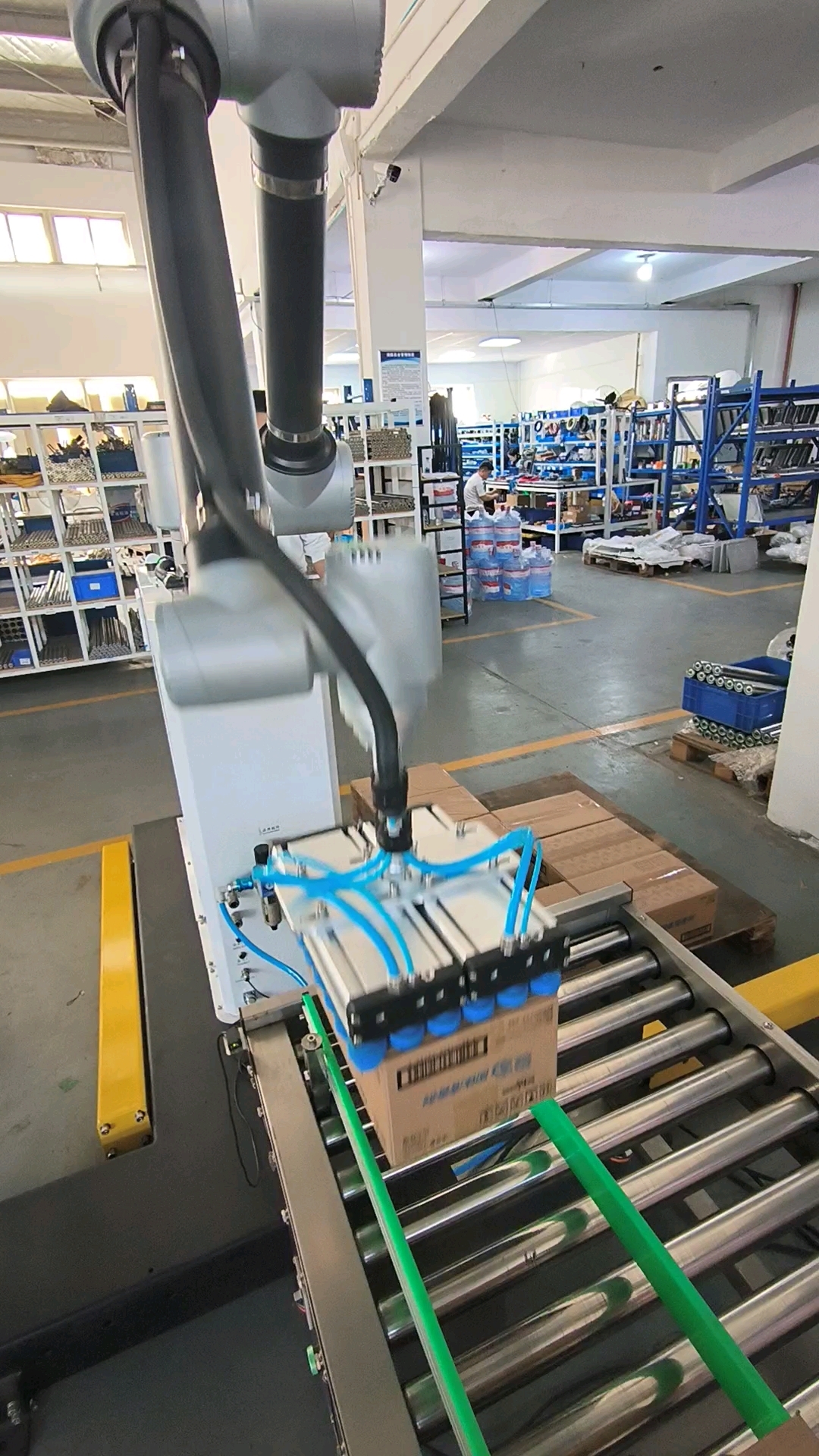 一家日化企業(yè)因廠房老舊,無法安裝傳統(tǒng)碼垛設(shè)備。采用協(xié)作機(jī)器人搭配升降柱的方案,僅需1.5m×1m占地空間,完成3層碼垛,碼放高度達(dá)2.2米,投資回收周期縮短至12個(gè)月。
