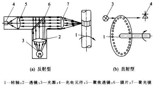 數(shù)字式光電傳感器 (1)光電轉(zhuǎn)速傳感器 光電式轉(zhuǎn)速計將轉(zhuǎn)速的變化變換成光通量的變化,再經(jīng)光電元件轉(zhuǎn)換成電量的變化。根據(jù)其工作方式可分為反射型和直射型兩類! 》瓷湫凸怆娹D(zhuǎn)速計的工作
